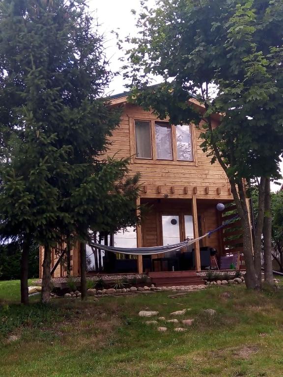 Dom Pod Sosnami to obiekt wakacyjny dla 5 osób o powierzchni 77 metrów. W ofercie kwatery jest salon z aneksem kuchennym, 1 łazienka i 2 sypialnie. Na terenie znajduje się bezpłatny parking i dostęp do WiFi. Ponadto goście Domu mogą oddać się aktywnościom sportowym, tj. siatkówka, czy badminton. Do dyspozycji odwiedzających pozostaje również plac zabaw z siłownią, miejsce na ognisko, grill, basen, leżaki oraz hamaki.
