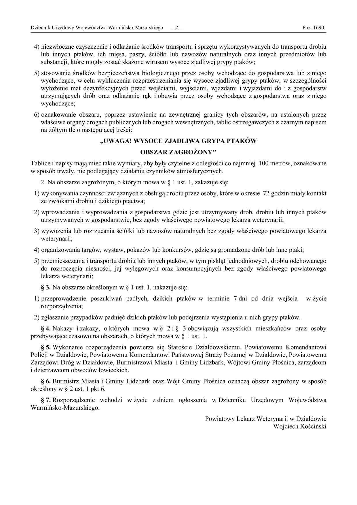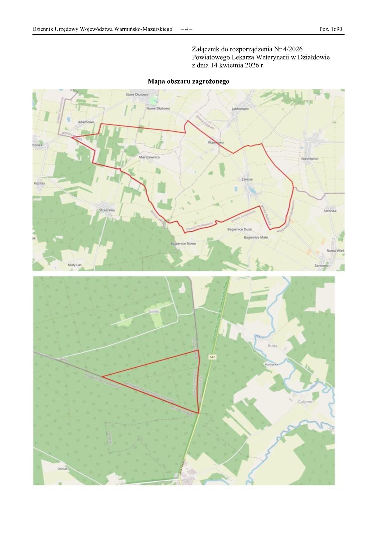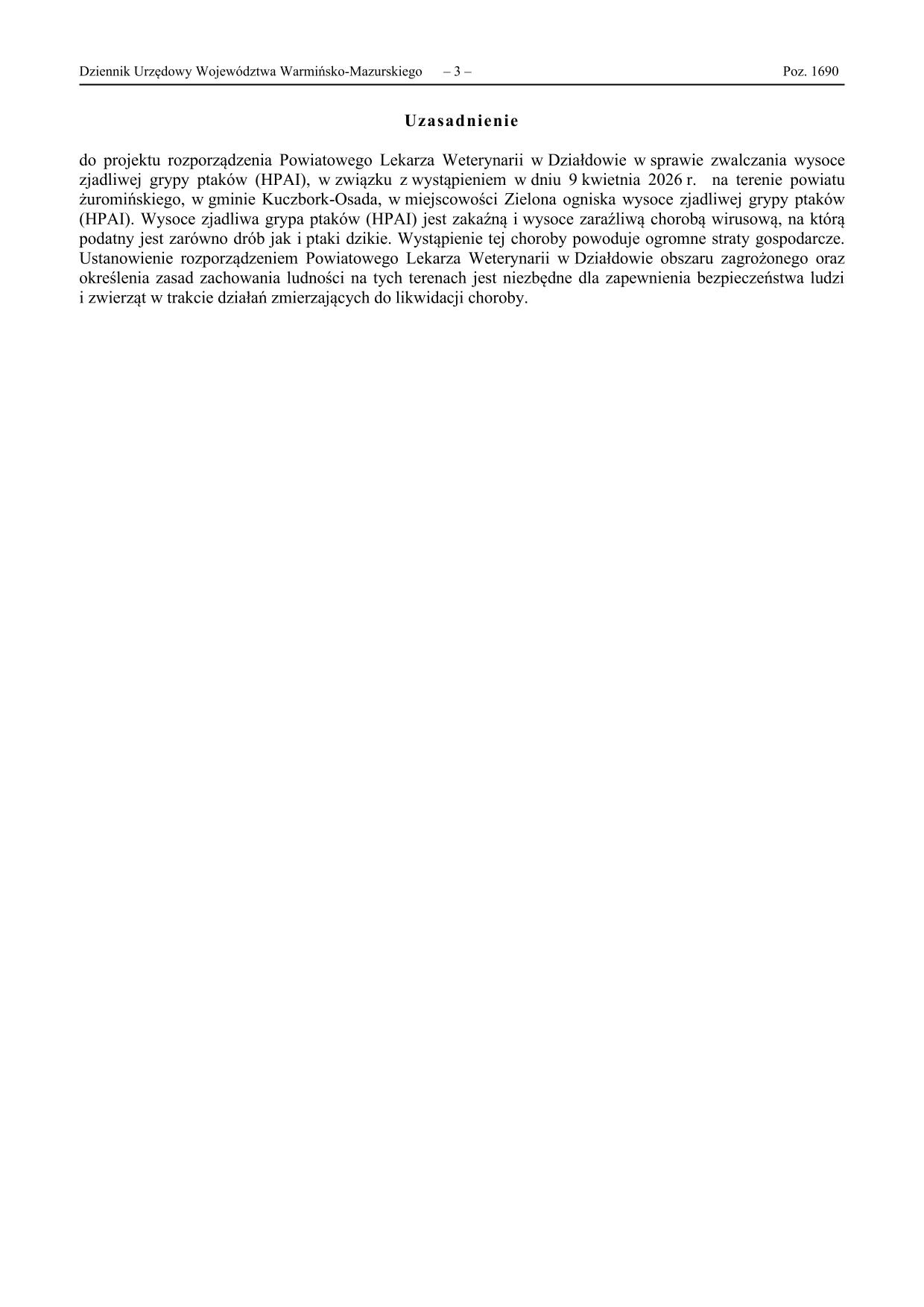 ROZPORZĄDZENIE NR 4/2026 POWIATOWEGO LEKARZA WETERYNARII W DZIAŁDOWIE  z dnia 14 kwietnia 2026 r.  w sprawie zwalczania wysoce zjadliwej grypy ptaków (HPAI)